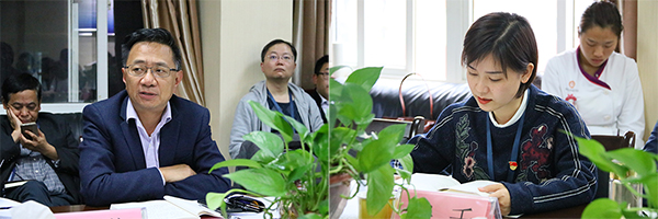 在听取了唐正龙副经理的主题发言后,修复种植科主任董强、口腔解剖生理学教研室主任贾莹、教工第一党支部(行政后勤党支部)书记周天分别作了学习发言。