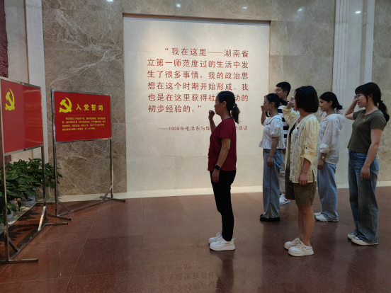 会前,蔡扬带领大家前往具有“红色摇篮”之称的湖南第一师范学院,重温入党誓词。随后走进橘子洲头,瞻仰毛主席青年艺术雕塑,追寻革命足迹,重温“红色记忆”,体会“新时代橘子洲精神”。